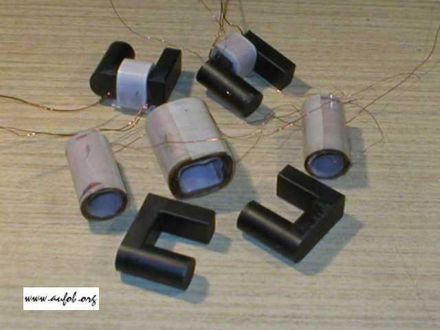 Jadra som použil z rozobraných vysokonapäťových transformátorov zo starých monitorov, bolo to síce trochu pracné, lebo jadrá sú zalepené v kostrickách.