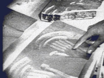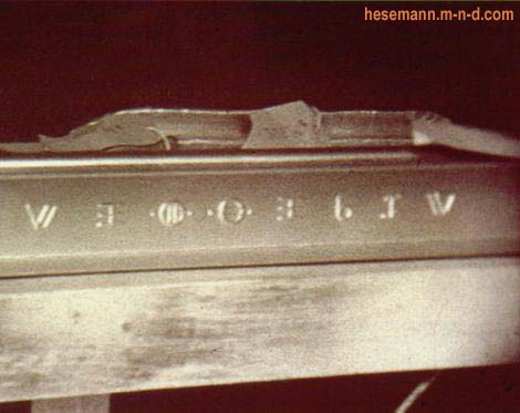 Obrázky z nájdeného vraku z havárie Soccoro 1947 podla Michaela Hessemanna, Roswell 1947 a z pitvy 6 prstej bytosti. Na nájdenom zliatinovom nosníku v tvare T sú hieroglyfy akoby v gréckej abecede, s textom ELEHQERID, ... že by ERIDanci? Epsilon a Tau Eridani sú blízko, a súhvezdie Eridanus, Rieka je veľmi zaujímavé, skoro ako na autách EE, diplomatického zboru. ELEH s ALLAH?, môže mať niečo s ELOHIM, ale spojiť Rael.org s Eridanom je odvaha, ale kto chce nech to dekóduje. Odliatky dvoch dlaní so 6 prstami sú z ovládacieho panelu nájdeného lietajúceho stroja. Na končekoch prstoch a v priehlbinách na paneli sú dutinky, ktorými sa ovládal lietajúci tanier, zrejme na to museli byť 2 bytosti, aby sa spoločným rozhodovaním dohodli na riadení smeru letu lietajúceho stroja. Posledný obrázok je z inej rasy bytostí, ktorá ma aziatské črty, nechem tým tvrdiť, že celá Ázia patrí inej záujmovej skupine, ale asi je to niekto z TauCeti, ZetaReticuli alebo od inej alternatívnej hviezdy, možností je skutočne veľa. Postupne sa môžeme dopátrať k mozaike. Čo pred nami ešte skrývajú? Pitva zo známeho Santilliho filmu podľa počtu prstov súvisí s nájdenými predmetmi. Fantázia...? Zdroje obrázkov z www.unexplained.info