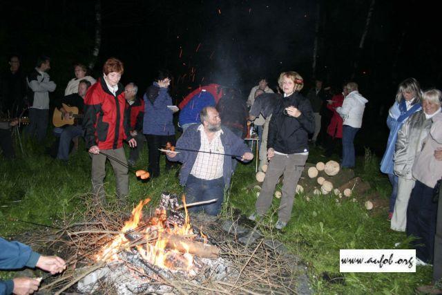 Okolo 22 hodiny sme sa postupne všetci premiestnili von ku ohnisku, kde popri opekaní špekáčikov sa rozprúdila družná debata po skupinkách.