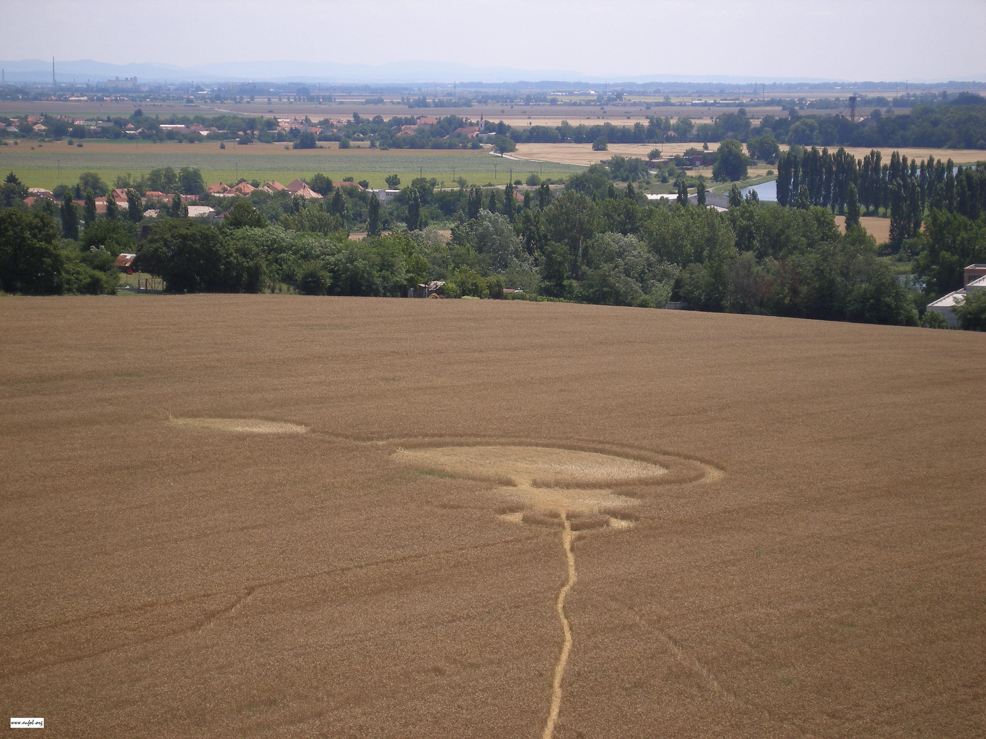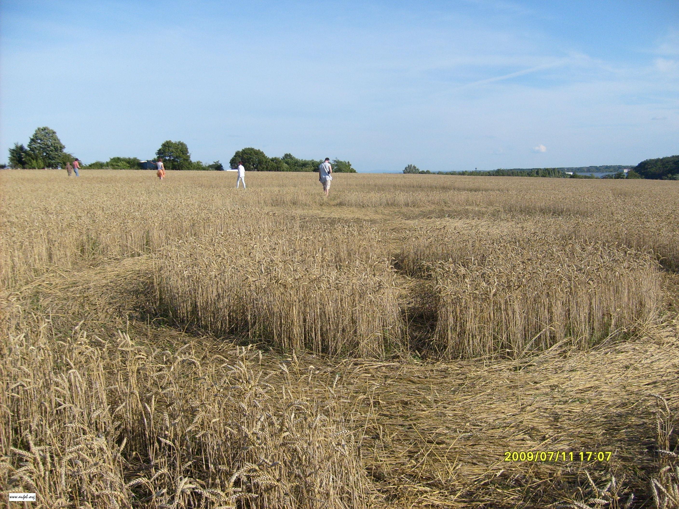 Vybrali sme sa tam hneď nasledujúci deň teda v sobotu 11.07.2009 spolu s členom asociácie z Komárna Kybernautom, ktorí sa to medzi časom dozvedel od ďalšieho nášho člena M. Karlíka z Trnavy. Našli sme to celkom rýchlo aj pomocou toho, že sme si všimli hlúčik ľudí prechádzajúcich cez pšeničné pole. Piktogram pozostáva z niekoľkých kruhov rôznych veľkostí. Nakoľko pán Karlík už tam bol pred nami my sme už nemerali ani radioaktivitu ani bio-energiu a sústredili sme sa na odber vzoriek obilia a presné zmeranie tvaru a veľkosti piktogramu ako aj zameranie miesta a orientácie v teréne.