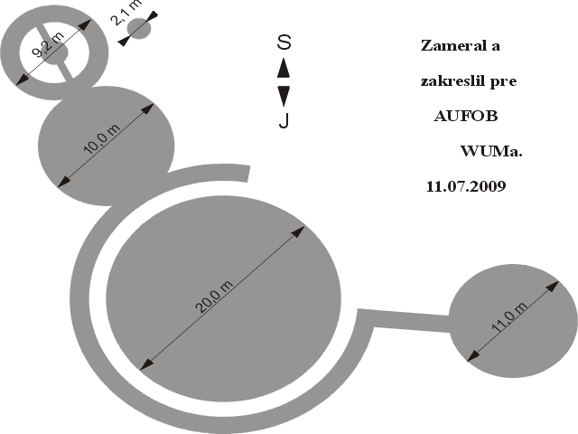 Celkom 5 kruhov ktoré vznikli v noci z 9 na 10 Júla 2009, prvý o priemere 9,2 metra v ktorom sa nachádza menší 2,3 metrový. V blízkosti sa nachádza aj najmenší kruh o priemere 2,1 metra. Ďalší kruh o priemere 10 metrov čiastočne zasahuje do prvého, teda prekrývajú sa, rovnako ako zasahuje do prstencu okolo nasledujúceho kruhu o priemere 20 metrov s prstencom o priemere 26 metrov. Kúsok bokom je ešte kruh s priemerom 11 metrov, pričom prstenec okolo najväčšieho opisuje len 3 štvrtiny a ústi do toho 11 metrového. Predstavu o tvare a veľkosti si môžete urobiť na priloženom nákrese.